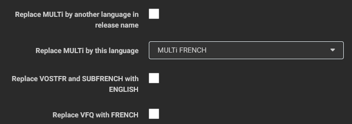 - Dual Audio: If you want to have Dual Audio releases (original and English audio) in case Sonarr does not find a VOSTFR or MULTi release.